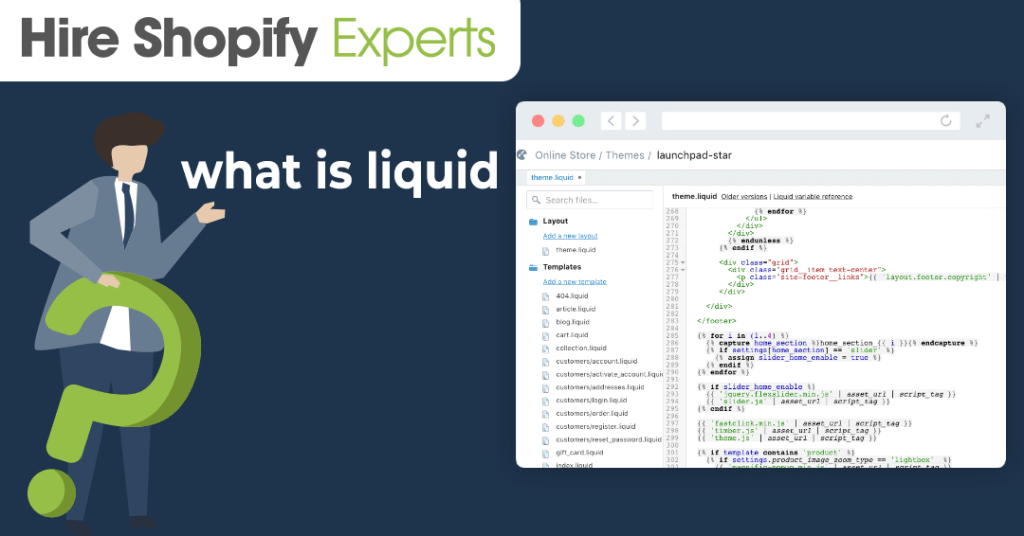Liquid used in Shopify is an open source template language. It helps you to make your own Shopify theme and customize the existing one as per your store requirement.